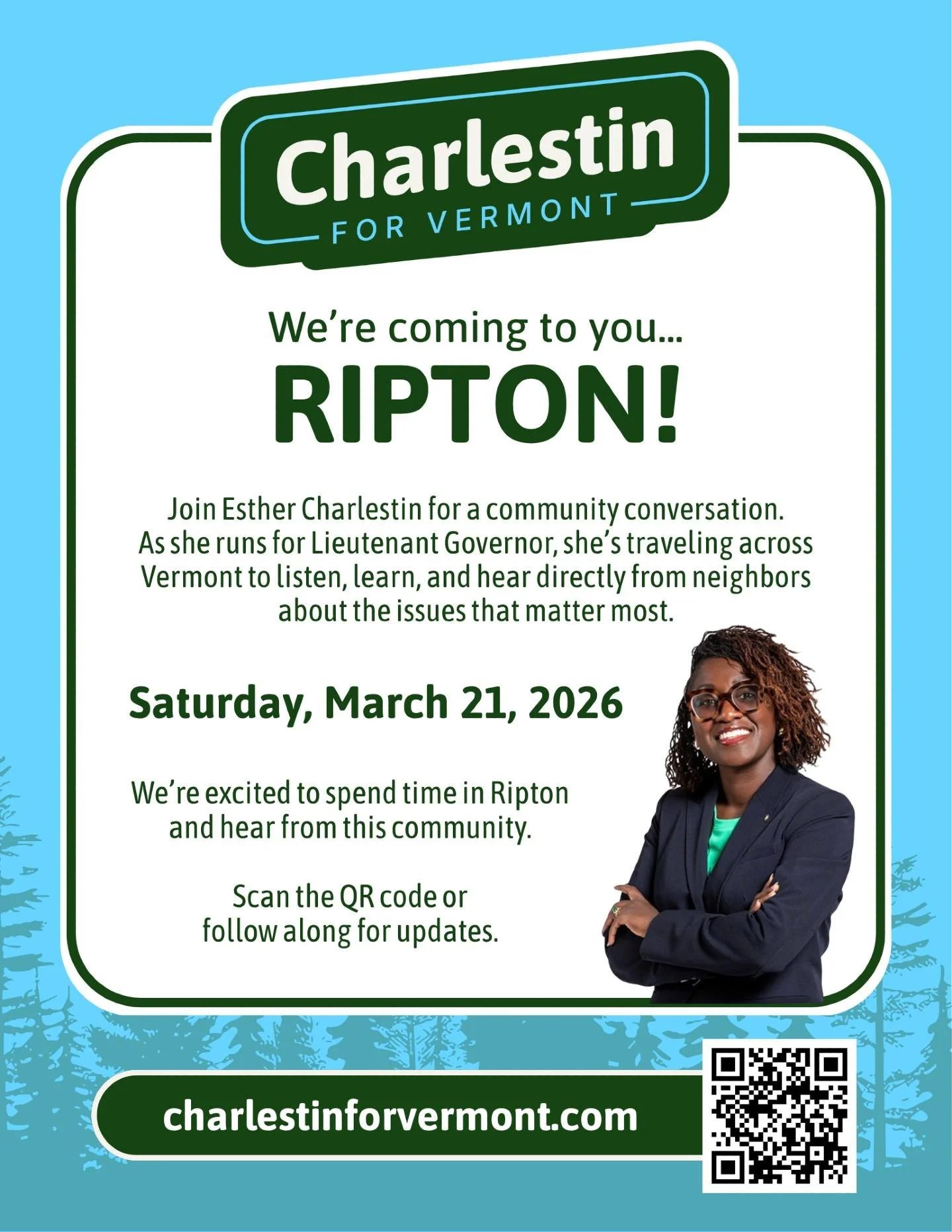 I am Esther Charlestin, and I am running for Lieutenant Governor because Vermont needs leadership that is bold, grounded, and deeply people-centered.